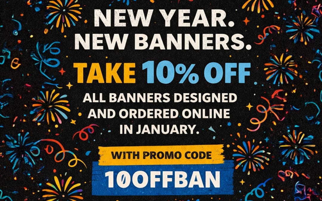 For a limited time, you can save 10% on custom banners when you design and order online using promo code 10OFFBAN.